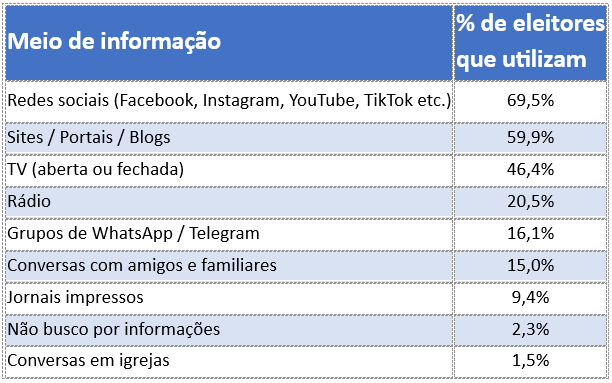 O levantamento também identificou os meios preferidos dos goianos para se manter informados. As redes sociais e os portais de notícias lideram com folga, seguidos pela televisão, que ainda resiste bravamente ao tempo — e ao zap. O dado reforça a migração definitiva do debate político para o ambiente digital, embora nem sempre isso signifique mais informação ou melhor compreensão.