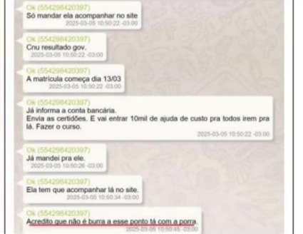 As mensagens revelaram que a quadrilha enviou uma apostila para a candidata estudar para a próxima fase, na qual ela atingiu 12 de 20 pontos. Algo que contribuiu significativamente para expor o esquema foi o fato de os quatro membros da mesma família que prestaram o concurso terem cometido o mesmíssimo erro.