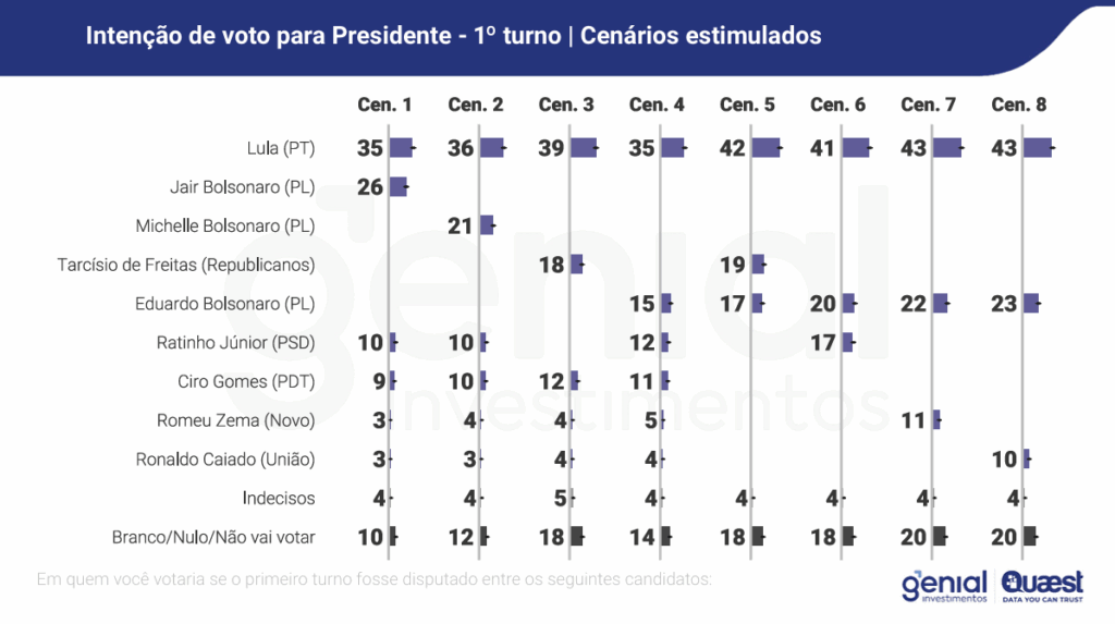 Pesquisa Quaest: Lula vence em todos os cenários de segundo turno