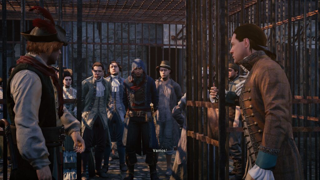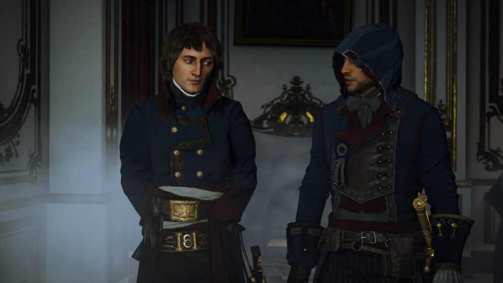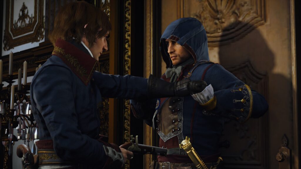 A história também dividiu opiniões. Arno Victor Dorian pode não ter a simpatia de Ezio Auditore, mas certamente tem carisma — e uma excelente dublagem nacional de Alexandre Drummond (a primeira voz de Timmy Turner). Antes de ser um Assassino, Arno é um humano movido pela vingança contra o homem que matou seu pai adotivo, um Templário. Sua jornada é complicada por sua paixão por Elise, sua irmã adotiva, o que o leva a tomar decisões questionáveis por estar “cego” de amor. Pessoalmente, defendo o personagem; suas falhas o tornam mais crível. E, convenhamos, só o fato de Arno não ser irritante como Jacob Frye (AC Syndicate) já é uma vitória. O elenco de apoio também brilha, com destaque para Elise e o mentor Pierre Bellec, ambos memoráveis.