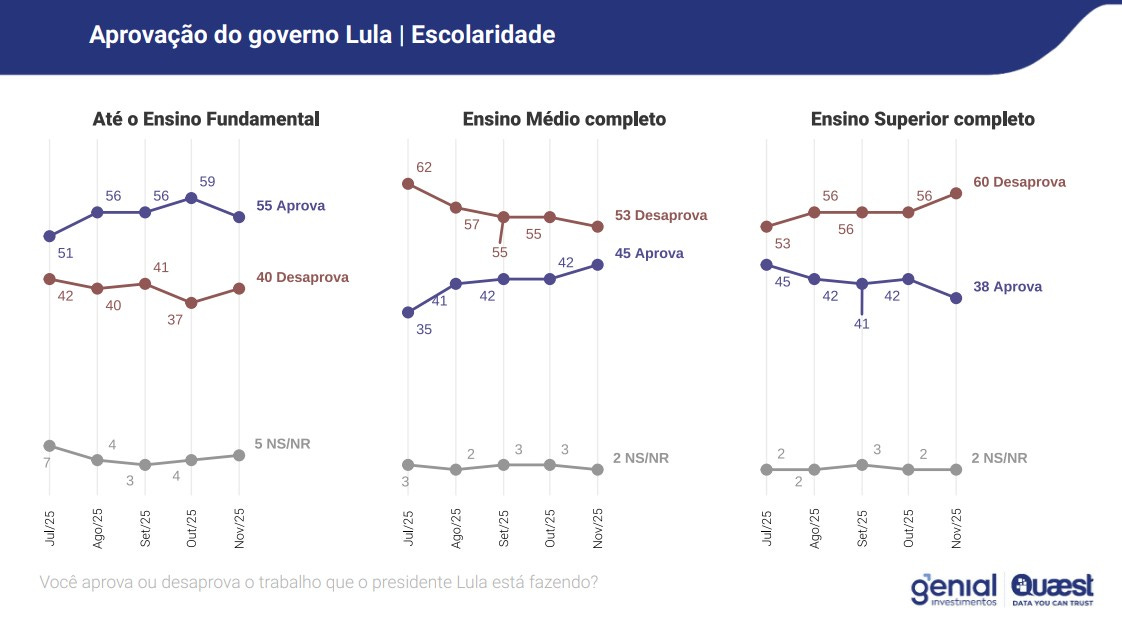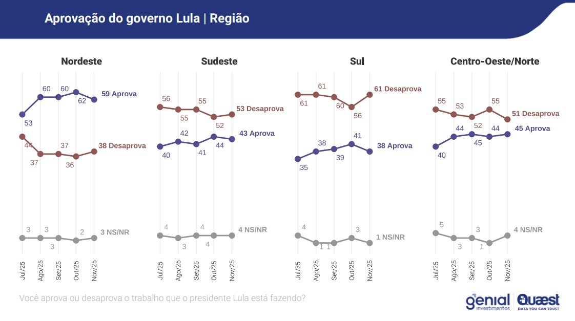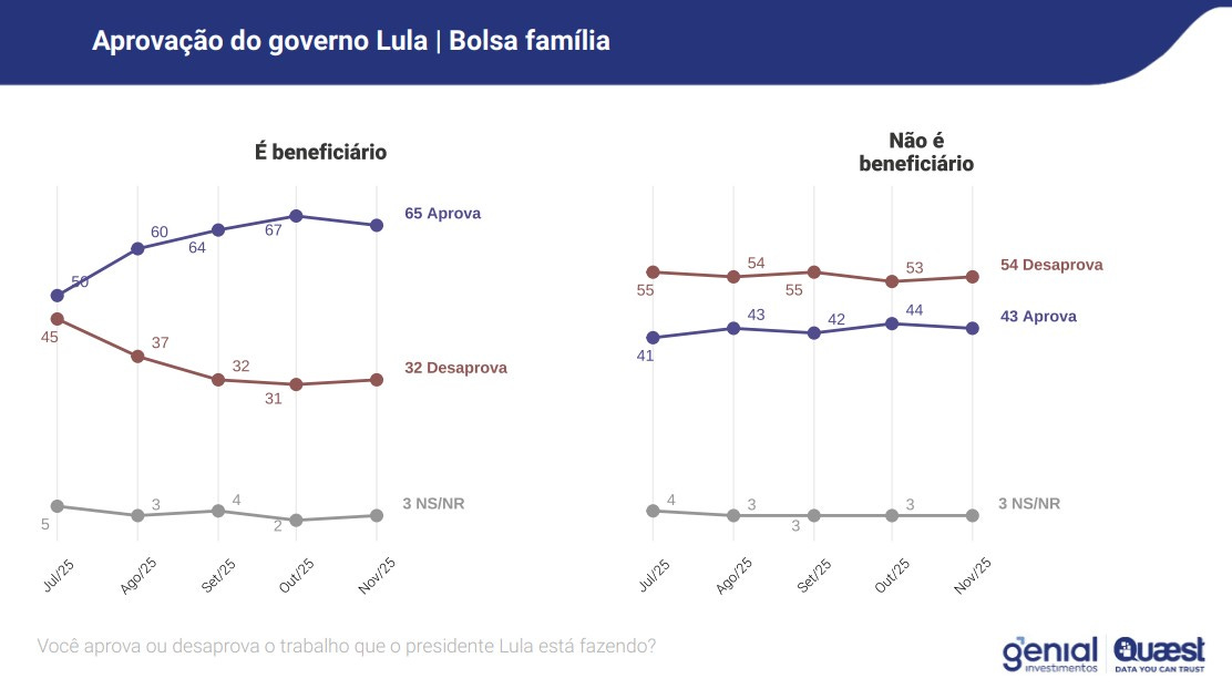 Os dados mostram que o apoio majoritário vem do Nordeste, de mulheres, de pessoas acima de sessenta anos, de indivíduos com baixa escolaridade, de famílias com renda de até dois salários mínimos e de beneficiários do Bolsa Família. Não se trata apenas de uma fotografia demográfica.