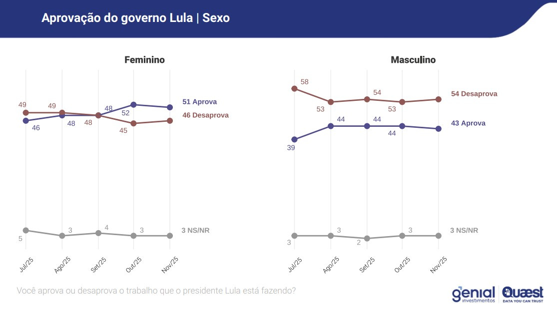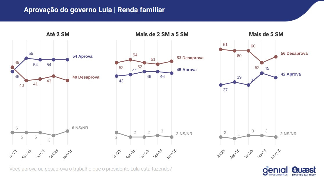 Em continuação ao texto anterior, O País que Deixou de Acreditar, avançamos na análise. A nova rodada de novembro de 2025 da pesquisa Genial Quaest revela um dado central para compreender a estabilidade do apoio ao governo Lula. Trata-se de um apoio concentrado, sociologicamente delimitado e politicamente funcional. A aprovação presidencial não está distribuída de forma homogênea. Ela se ancora em grupos específicos que, historicamente, sustentaram projetos assistencialistas no Brasil.