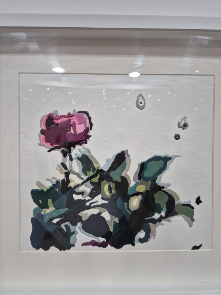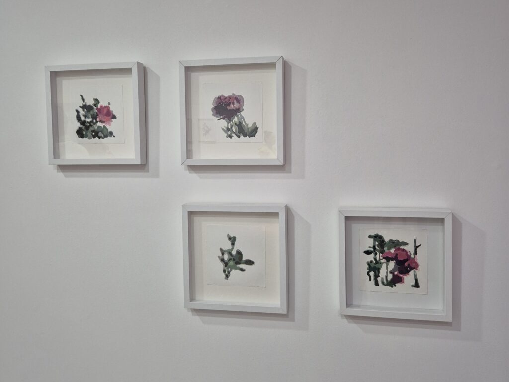 Ao transitar pela sala, o sentimento é de figuras que, a primeiro momento, fazem um sentido familiar: o jardim e as roseiras. Mas, ao se aproximar, há um novo significado. É quase como o analógico se perdendo, onde o ruído da fita VHS de 1998 se transmuta em grão, cor e volume.