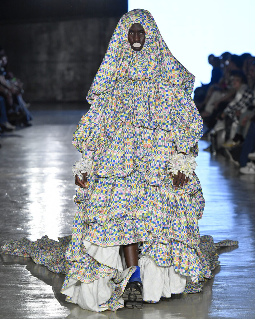 Em termos estéticos, a coleção aposta no maximalismo e em formas geométricas, utilizando técnicas de drapeado e alfaiataria para conferir volume e identidade às roupas.
