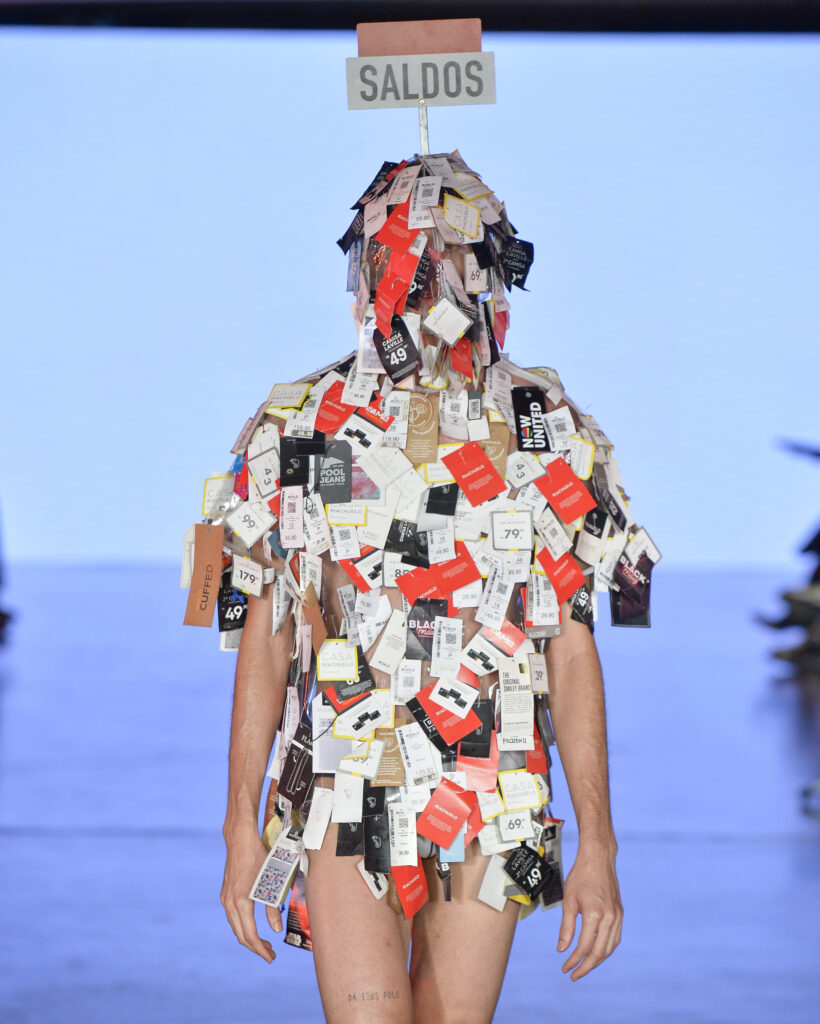 Foi tudo muito rápido. Em menos de um ano, Lucas saiu de uma vitória no concurso Sou de Algodão direto para a abertura do maior evento de moda autoral do país. Lucas trouxe a coleção “Saldos”. A obra é um manifesto estético sobre o acúmulo e o descarte, onde o sagrado se veste de promoção e o “diabo” veste o que sobra.