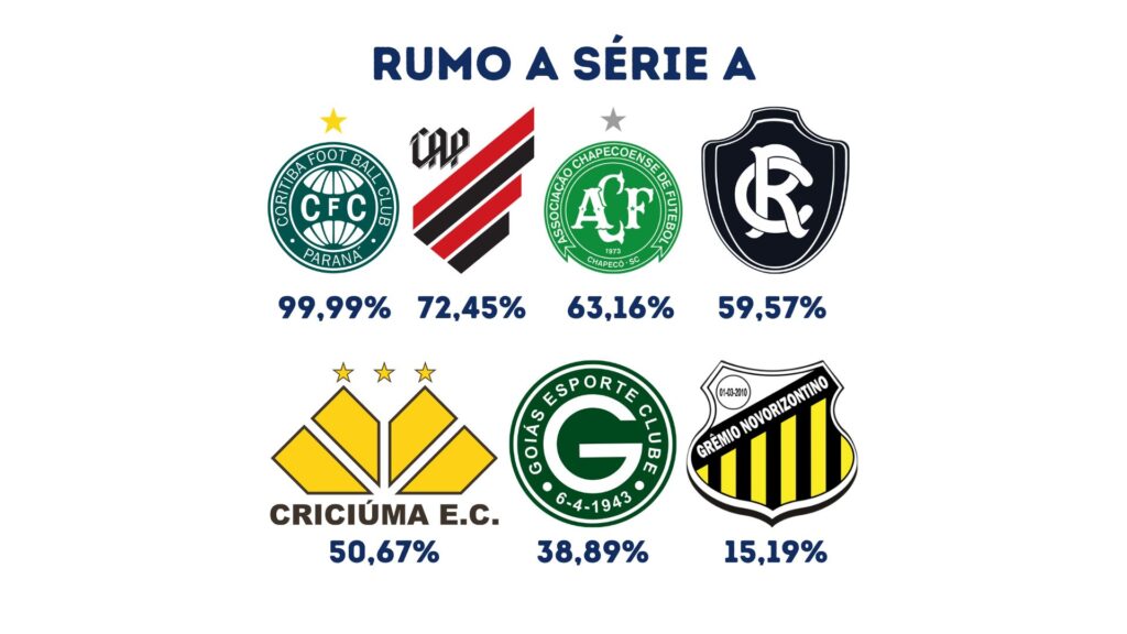 Embalado pela terceira vitória consecutiva, o Athletico-PR também segue firme na briga. Ao vencer o Volta Redonda por 2 a 0, na Ligga Arena, o Furacão alcançou 72,45% de chances de garantir o acesso. Além da dupla paranaense, Remo e Chapecoense completam o G-4 da Série B.