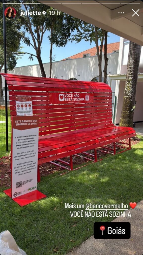 A iniciativa rapidamente chamou a atenção de quem passa pelo local e ganhou repercussão nacional quando a cantora e influenciadora Juliette, ex-BBB, postou uma foto do banco em suas redes sociais com a legenda: “Mais um banco vermelho, você não está sozinha“.