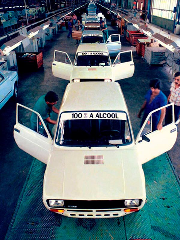 A indústria automobilística entrou na jogada. Em 1979, a Fiat colocou nas ruas o Fiat 147 movido exclusivamente a álcool, considerado oficialmente o primeiro carro produzido em série com esse tipo de combustível. Outras montadoras — como Volkswagen, GM e Ford — logo seguiram o movimento.