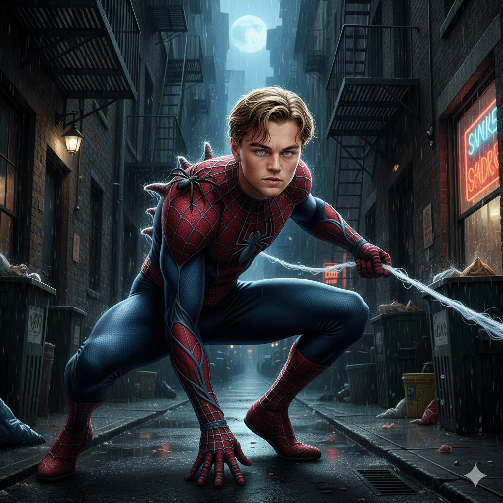 DiCaprio confirmou em entrevistas que foi abordado para viver o herói, mas disse que não se sentiu pronto para assumir o papel naquele momento. Há quem diga que ele recomendou seu amigo Tobey Maguire, mas não há registro confiável de que ele tenha feito isso. Como todos que acompanham filmes de super-heróis sabem, Tobey viveu o amigo da vizinhança numa versão que acabou sendo produzida anos depois.