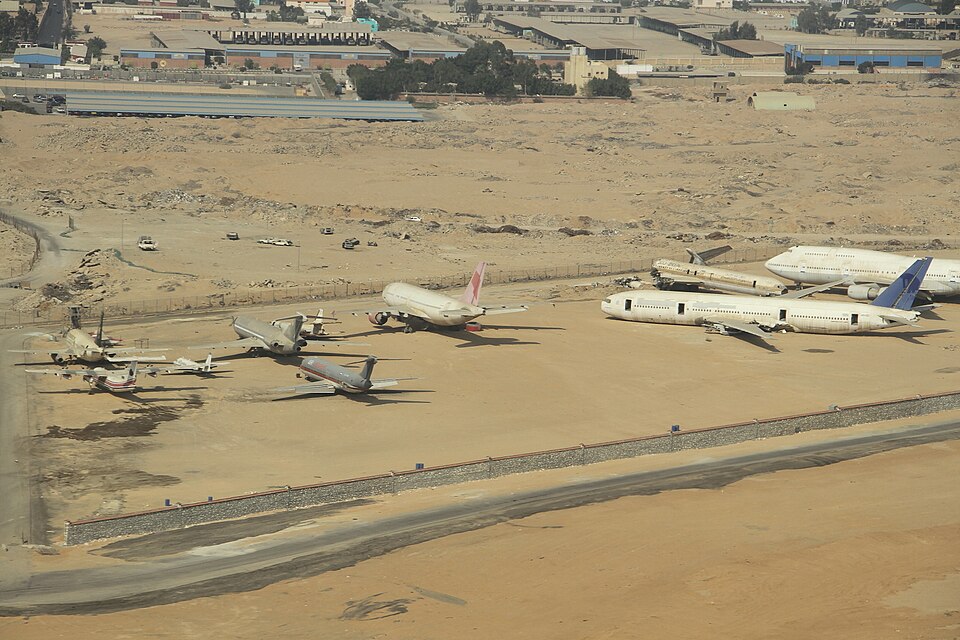 Pátios em regiões áridas concentram o armazenamento e o desmonte de aeronaves